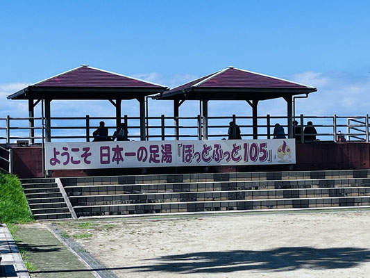 小浜温泉で5分だけ足湯。5分だけです笑 多比良港近くの温泉施設でゆっくり旅の疲れを癒すのを目的に先を急ぎます!