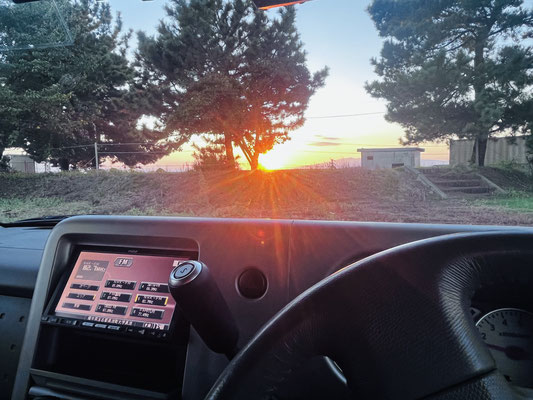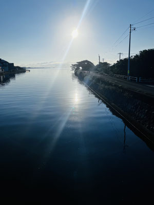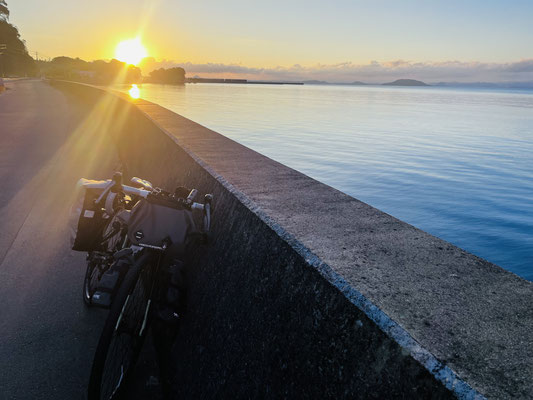 昇る朝陽を背にペダルを漕ぎます。数か月前は昇る朝陽を背にパドルを漕いでたなぁ・・・
