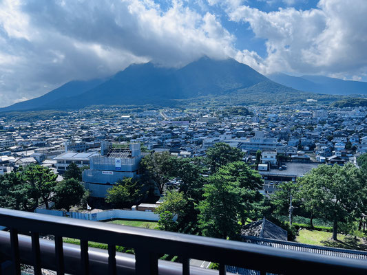 島原城にて記念撮影。城内には切支丹資料を中心に多くの文物が展示されています。