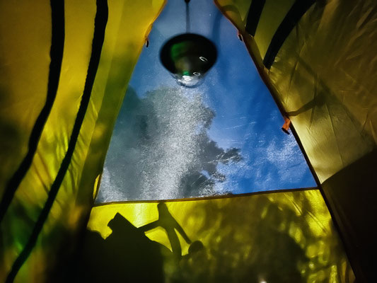 前日の遅れを取り戻すべく、日の出前には野営地を出発です。