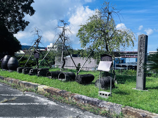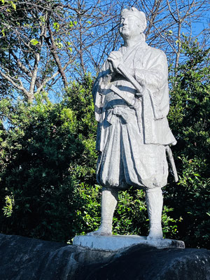 原城跡にて天草四郎像。口之津港からは天草行きのフェリーが出航していました。