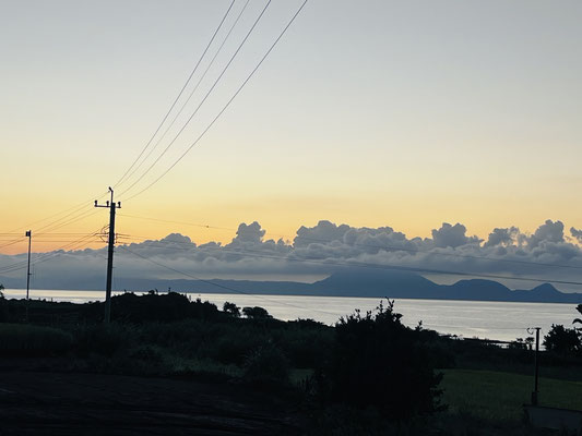長洲港に駐めてた車内より、夕陽を一枚。天候にも恵まれ、最高の旅となりました。
